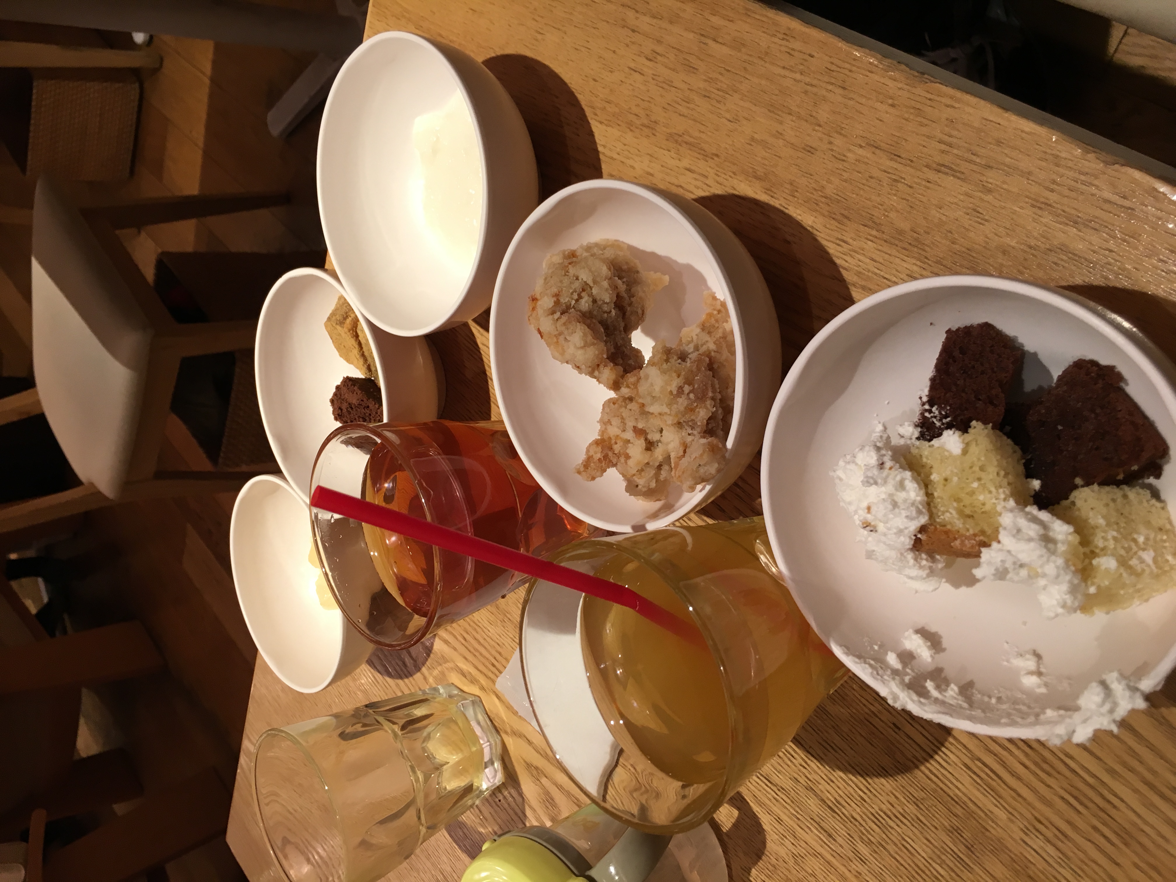 池袋のルミネでランチブッフェ。 ひとしきり食べて、お腹もいっぱい。 妻はデザートを取って来ると出て行き、私はコーヒーを飲んで待つ。 …。 バナナはおやつに入りますか? 唐揚げはデザートに入りますか? 2016/11/13(Sun) 23:45:31