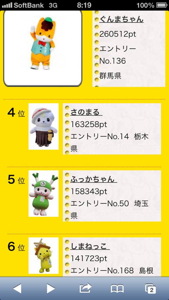 ふっかちゃん。 ゆるキャラグランプリなるものを発見し、調べたところ、 何とこのふっかちゃん、 ゆるキャラランキング、 全国5位 (゜o゜;; ! 86キャラの中、この成績は超一流と言ってもいいんじゃないでしょうか? Mちだはコレからふっかちゃんを応援していきます☆彡 みなさんも是非ぜひ、 おネギ~します(・Д・)ノ http://www.yurugp.jp/sm/ 2013/01/23(Wed) 08:27:35
