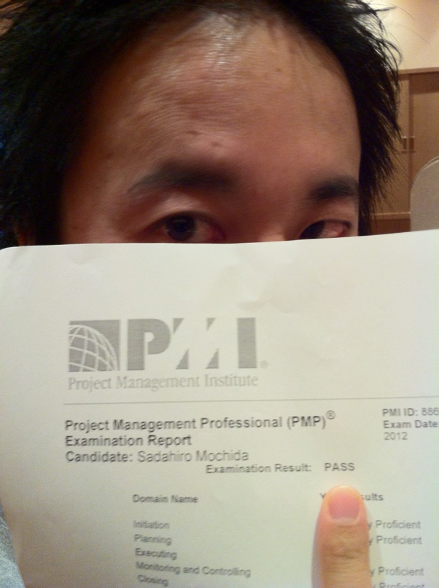 Project Management Professional を本日受験しました。 これまでにないテスト体験だったので少し報告。 会場に到着し、待合室に入る。 待合室は小さい病院の更衣室位の広さでイスが10脚くらい並んでいる。 30分前になると係りのイケメンがやってきてPMP試験の方~。 と呼びかけ。 すぐさま反応し1番で受付。パスポートで本人確認され、その中にカンニング書き込みがないかなど調べている。 その後テスト前の注意事項を読まされ、変な日本語を話す外人のところに誘導される。 ハンカチ、ティッシュを含め全ての荷物をロッカーにしまわされる。 さらにはポッケを反対にしろ、試験会場では上着の脱ぎ着も禁止という管理に追い打ちをかけるかのごとく、 最終的に金属探知機でカラダをまさぐられる。 予定外に身の潔白を証明させられ、 冤罪の罪深さを知る。 晴れて入室許可が下った私は、コンピュータが置かれた6番ブースに着席。 試験は13時からなのに、15分も前にスタート。 直前の厳重な管理から、突然 アバウト対応に切替わる。 その温度差に、脱いだ上着を少し後悔する。 コンピューターのスタートボタンを押すと、チュートリアルとかいう画面がでて、 いきなり英語のアンケートが開始される。 若干戸惑いながらもアンケートに回答し、テストがスタート。 試験時間は4時間。 ファミコンだってそんなに長くやってられない(ーー;) 専門用語と計算の激しいラッシュ、4時間の過酷さに、思わずヘルニアとパニック障害を併発しそうになるも、 ノーモアスタディーの精神で回答を続ける。 現世にその時間を当てはめるなら、フルサッカー2試合分。 そんなに長くプレイし続けられる選手なんて今の代表にいるんだろうか?北澤だって無理に違いない。 そんなことが時々よぎりながら余計な時間も流れて行く。 英語と併記された問題文。 完全に監視されたブース。 カチカチというクリック音とパソコンの扇風機の音だけが響く会場。 Enterキーを押しても計算結果が表示されない計算機。。。 そんなシチュエーションを受け入れながら時間は過ぎて行く。 そした曖昧な問題を再確認しているところでタイムアウト。 画面が切り替わり、またもや英語でアンケートが始まる。 全部の回答に、「どちらともいえない」。を選択したった。 どや、 参考にならへんやろ。 何故か少し意地悪したくなると、関西人テイストになるのは何故なのか? 疲労からくる何かなのか。 そうこうしているうちにアンケートも終わり、画面にTHANK YOU の文字が。 コンピューター試験ならではのクイック採点が実行されるのはネットで見て知っていた。 でも自分でクリックして結果を出すと思っていた。 そんな思いも露知らず画面は勝手に進み、 試験結果が。 小さく、そして強調する訳でもなく、 PASS 心揺さぶられながらも、これまでの我慢からの開放に、 小さくガッツポーズで、 ぉっしゃ(`_´)ゞ 2012/11/06(Tue) 08:47:58
